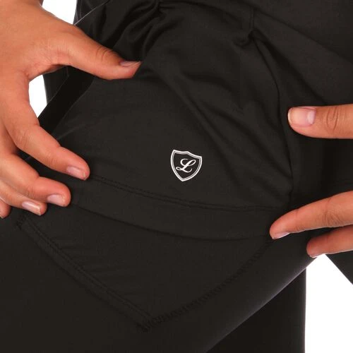 You can’t guarantee the weather but you can hit the court on cooler days with this fashion-forward Skort Fashion 7/8 pant from Limited Sports. It’s a fun feminine look, and a practical solution for keeping muscles warm when the weather turns cold. A wide elasticated waistband provides a comfortable fit. The cute skirt features stitched pleats and a perfectly sized ball pocket on the left side. A discreet logo has been placed on the hem.